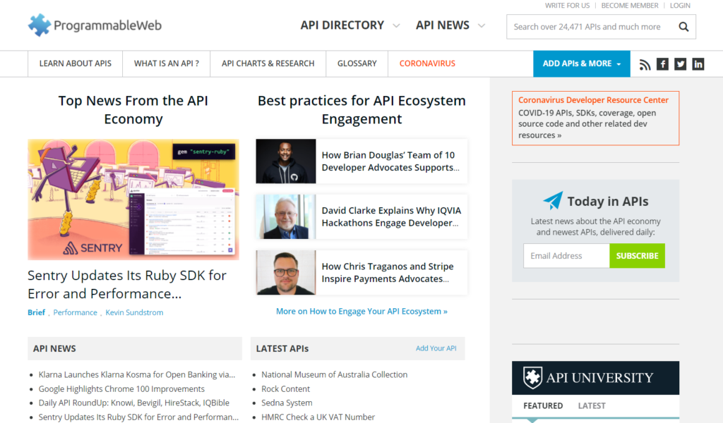 Това е водещ източник на новини и информация за API, проследявайки тази област из целия свят и осигурявайки уеб API директория.