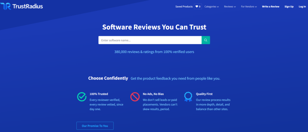 Trustradius е платформа за отзиви, която помага на купувачите да вземат по-информирани решения. Разгледайте подробната информация, която предоставят в профилите на компаниите, като кликнете тук.