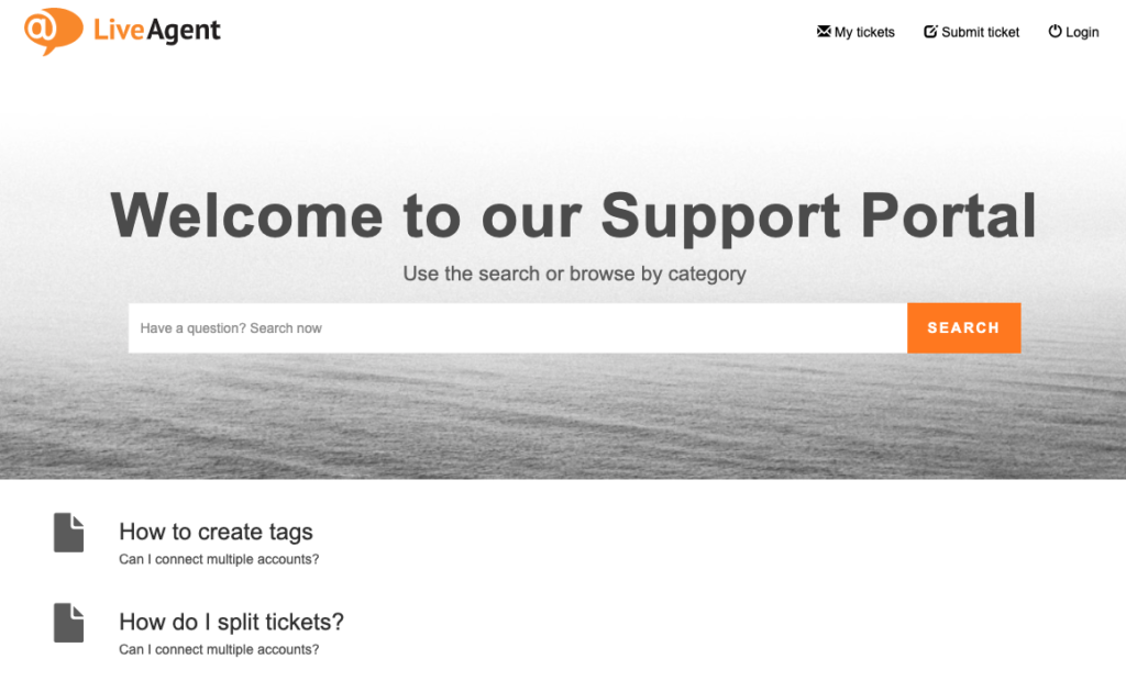Вече ви разказахме за клиентския портал, но сега ще се спрем на няколко допълнителни функции на клиентския портал на LiveAgent. Клиентският портал позволява на вас и служителите ви да виждате историята на тикетите на клиента. Клиентът трябва просто да влезе в системата и да види цялата история на тикетите си в портала. Служителят от отдела за поддръжка може да види историята на тикетите в системата на LiveAgent. Клиентският портал включва и статии в базата знания, форуми, раздели с предложения и други.