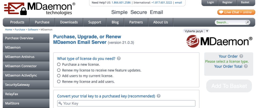 Все още нямате MDaemon? Отидете на сайта на продукта им и започнете. Попълнете кратък въпросник и вземете план. След като имате кода на продукта си, можете да отидете на страницата с литература, за да видите ръководства за употреба и други ресурси. След като сте готови с настройката на MDaemon, отидете в профила си в LiveAgent.