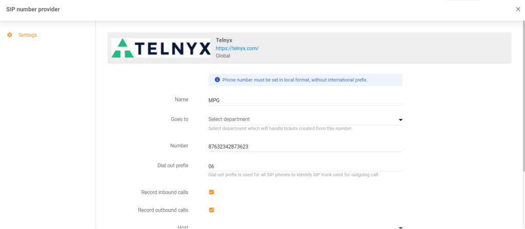 Просто отидете в Конфигурация > Обаждания > Номера > Telnyx. Добавете VoIP номера и го използвайте веднага.