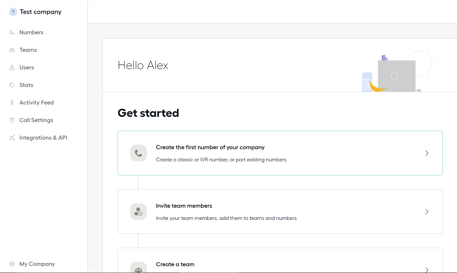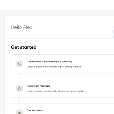 Лесно и бързо можете да започнете да използвате Aircall. Когато се регистрирате за безплатен тестов период, можете да изберете кой план да опитате. Целият процес по регистрация е бърз, както би се очаквало. След като стигнете до таблото си, ви посреща приятно изглеждащ интерфейс, който е лесен за навигация. Най-хубавото е, че настройката на IVR-а е налична директно на началния екран, така че няма нужда да я търсите из конфигурацията на Aircall.
