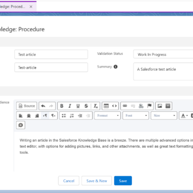 Функционалността за база знания на Salesforce не е най-бързата, нито най-лесната за стартиране. Да я откриете и да разберете как да я активирате в обширното море от инструменти на Salesforce може да ви отнеме време, но няма да останете разочаровани когато успеете. Въпреки че базата знания на Salesforce не е най-добрата налична, определено ще свърши добре работата си, особено ако имате нужда и от други от чудесните инструменти на Salesforce.