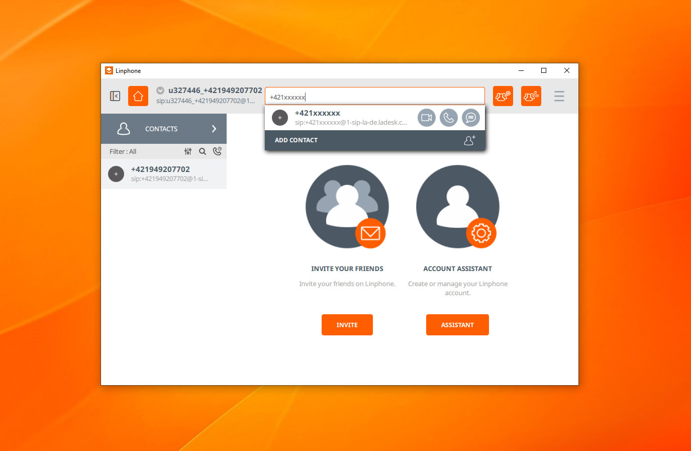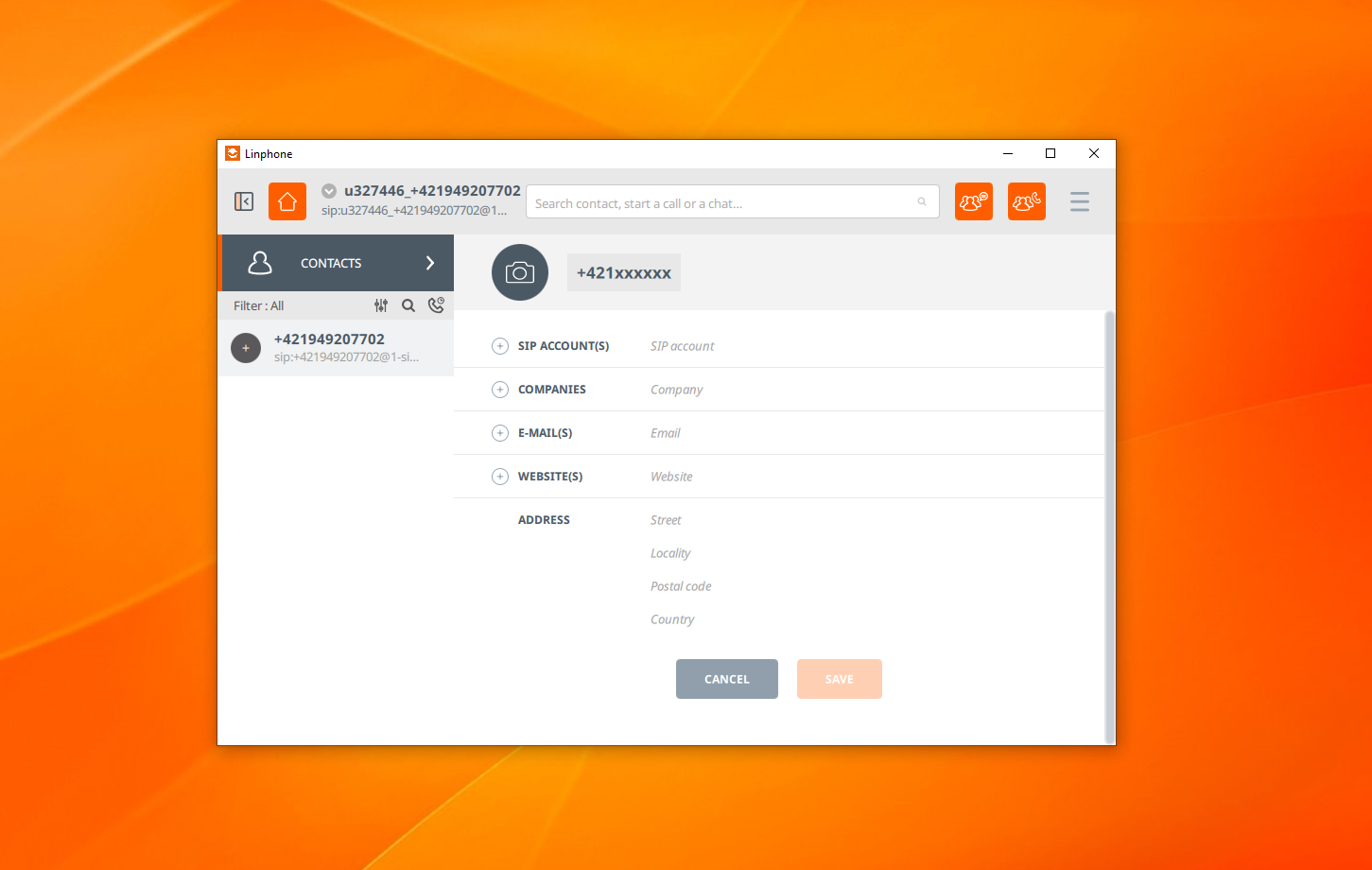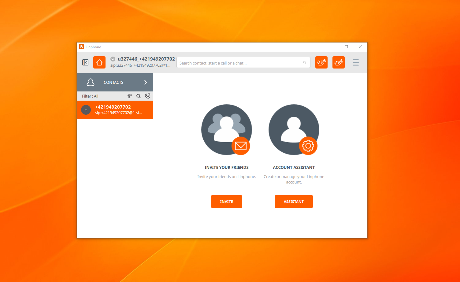 Дизайнът на приложението изглежда модерен, което ме изненада, тъй като Linphone е безплатен софтфон с отворен код. Много безплатни софтфони имат скучни, остарели интерфейси, но не и този. Важните бутони се отличават с изпъкващ оранжев цвят, който привлича вниманието ви и ви помага да се ориенирате. Това е особено полезно, тъй като самата навигация изглежда необичайна на пръв поглед.