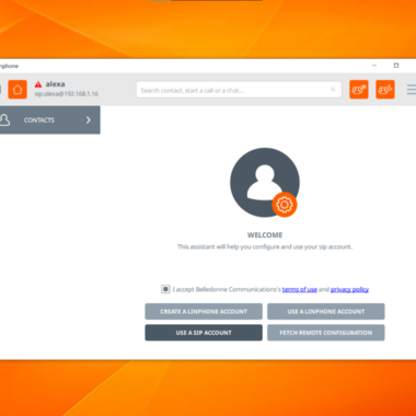 Като софтфон с отворен код, можете просто да свалите Linphone от официалния му уебсайт и да го инсталирате за нула време. Процесът на инсталиране е стандартен. Веднага след стартиране на приложението, Linphone ме посрещна с потребителско споразумение и начално ръководство, което ви запознава с множество опции. Можете да създадете или да влезете в своя профил в Linphone, да свържете SIP акаунт или да изтеглите готови настройки.