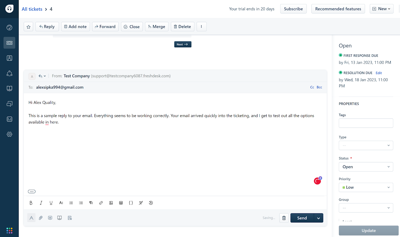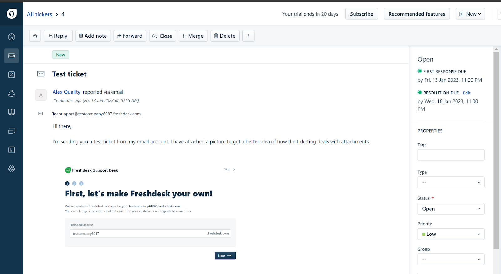 Време е за тестване. Тествах системата за управление на запитвания на Freshdesk основно от гледната точна на оператор, за да я видя в действие. Опитах се да тествам повечето функции достъпни за мен, за да ви помогна да прецените дали Freshdesk е правилният избор за вашия бизнес. Да започваме.