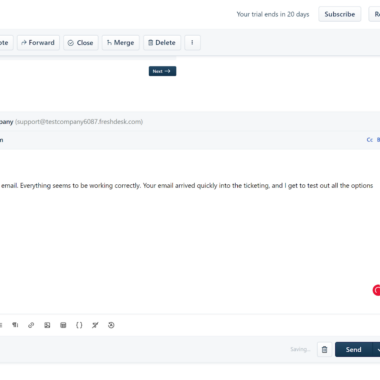 Като цяло, системата за управление на запитвания на Freshdesk работи много добре, с минимални или никакви проблеми. Известията изглежда не работят, дори след като пробвах различни имейл адреси и при положение, че бях включила всички известия при получаване на ново запитване. Въпреки този дребен проблем, бих казала, че Freshdesk разполага с много добре проектирана система за управление на запитвания, която би била много удобна за всеки тип потребител,