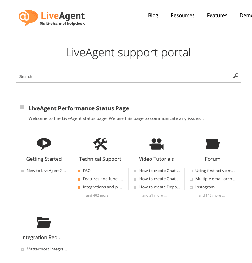 LiveAgent предлага разнообразни функционалности, които помагат на бизнесите да се свържат с клиентите. Той също така предлага обширна библиорека с ресурси за клиентите си. Тези ресурси включват публикации в блога, шаблони, терминологичен речник, тестове за скорост на писане, WordPress плъгин, директории, уебинари, академия и много други.