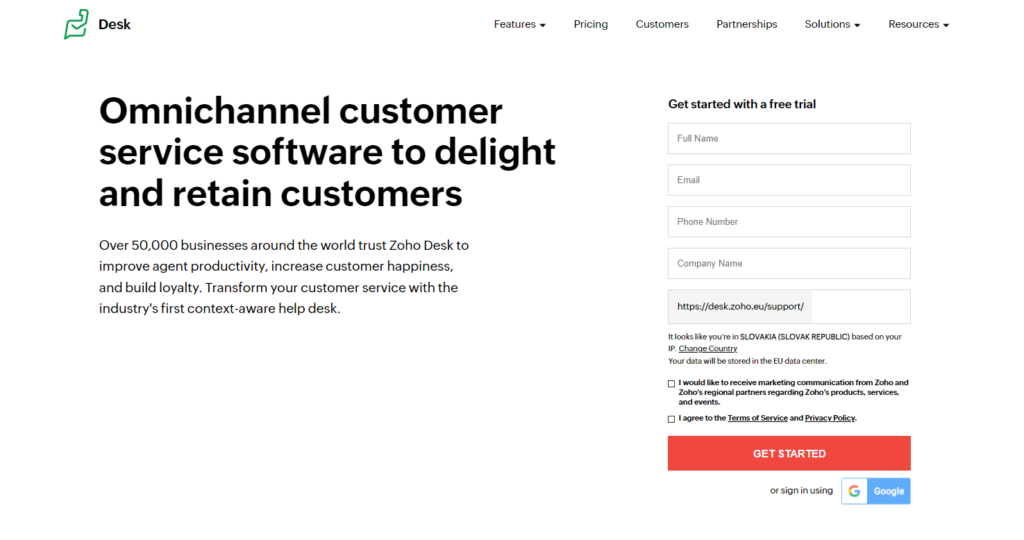 Zoho Desk подпомага екипите за клиентско обслужване и търговците като софтуер за клиентско изживяване. Той също така предлага платформа за резервации, която помага за клиентите да си насрочат час.