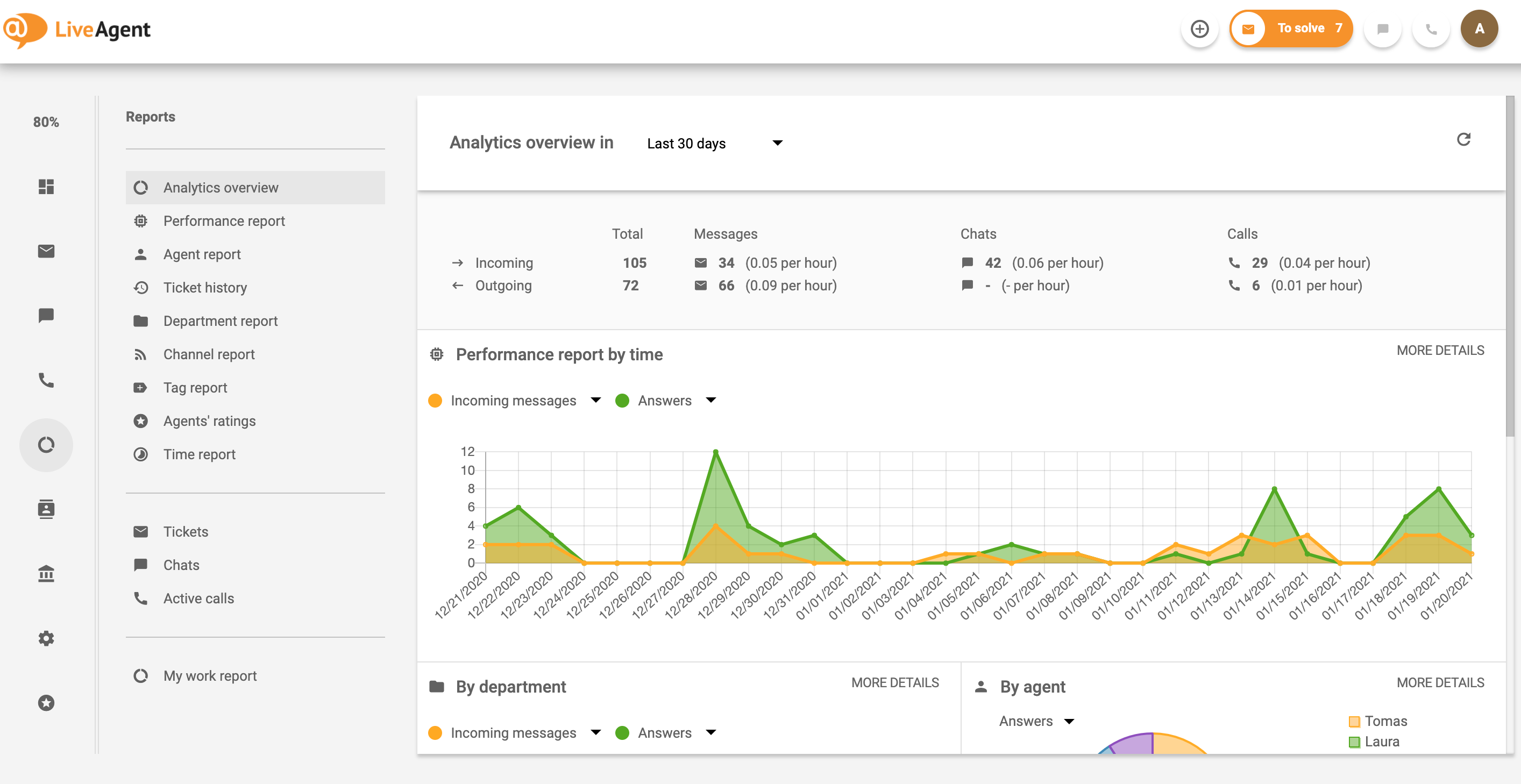 Аналитиката в реално време предоставя подробни доклади за времето за отговор, подчертавайки области за потенциални подобрения и гарантирайки придържане към споразумения за ниво на услуга (SLA). Чрез оптимизиране на процентите на отговор, организациите могат да укрепят [обслужване на клиентите](/customer-service-software/ “Откройте 10-те най-добри софтуера за обслужване на клиентите, класирани от експерти. Сравнете топ инструменти като LiveAgent, Zendesk и Freshdesk, за да подобрите поддръжката!”") и удовлетвореност, в крайна сметка насърчавайки лоялност и задържане.